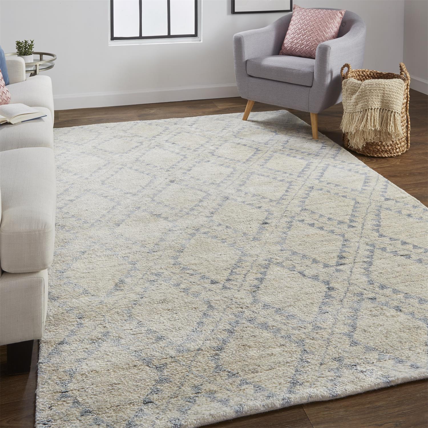 Call Now to Order M-F 9-5p PSTThe Abytha Moroccan Diamond Hand-Knot Rug from MODERNITURE. A decadently soft hand and inviting sheen are the signatures of the Abytha Collection. Hand knotted wool and viscose fibers crisscross in casual geometry proving upscale looks can be both luxe and durable. Handmade in India Abytha is a designers dream easily commanding but never demanding your guests attention.