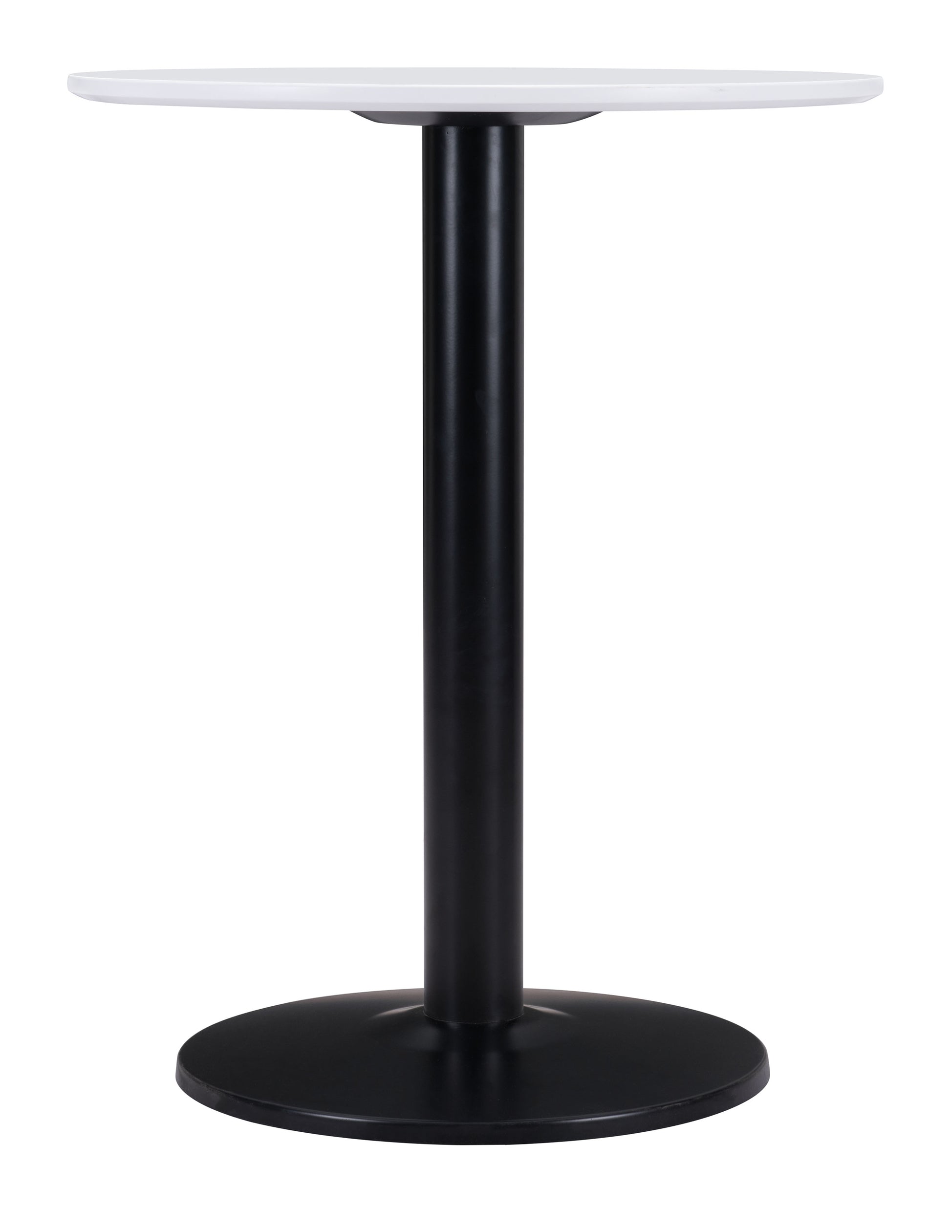 The Alto Bistro Table from MODERNITURE. A stylish and hardworking table for all of your spaces: kitchen, living room, office, or bar area. A disc floats on a pedestal that appears to emerge from the ground.