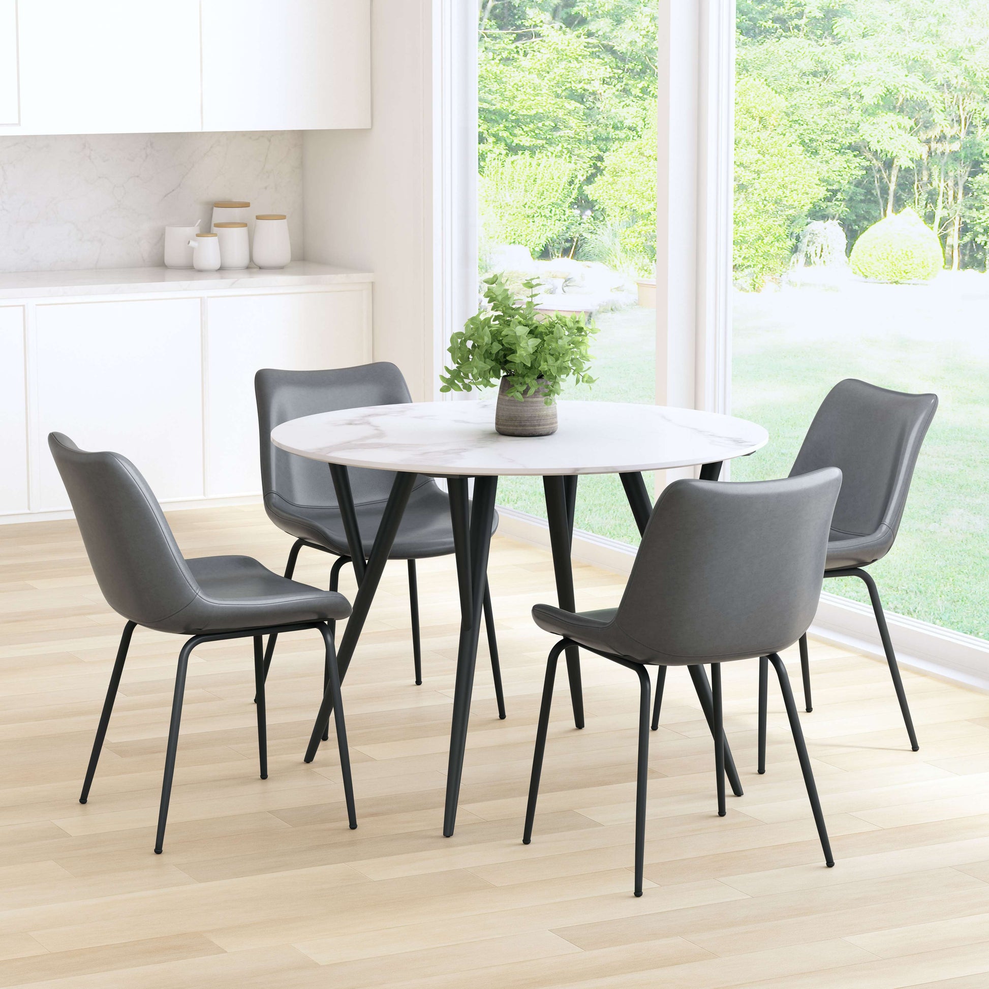 Call Now to Order M-F 9-5p PSTThe Byron Dining Chair (Set of 2) from MODERNITURE. The Bryon Chair has mid century modern urban lines and looks great in any space. With a heavy duty vinyl covering and a sturdy steel frame, this chair fits in any dining room, home office, or even as a bedroom accent chair. The legs are finished in a matte black coating that is durable for hospitality use.