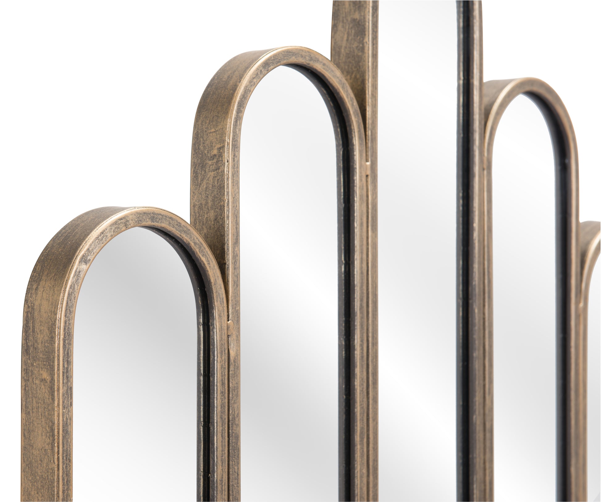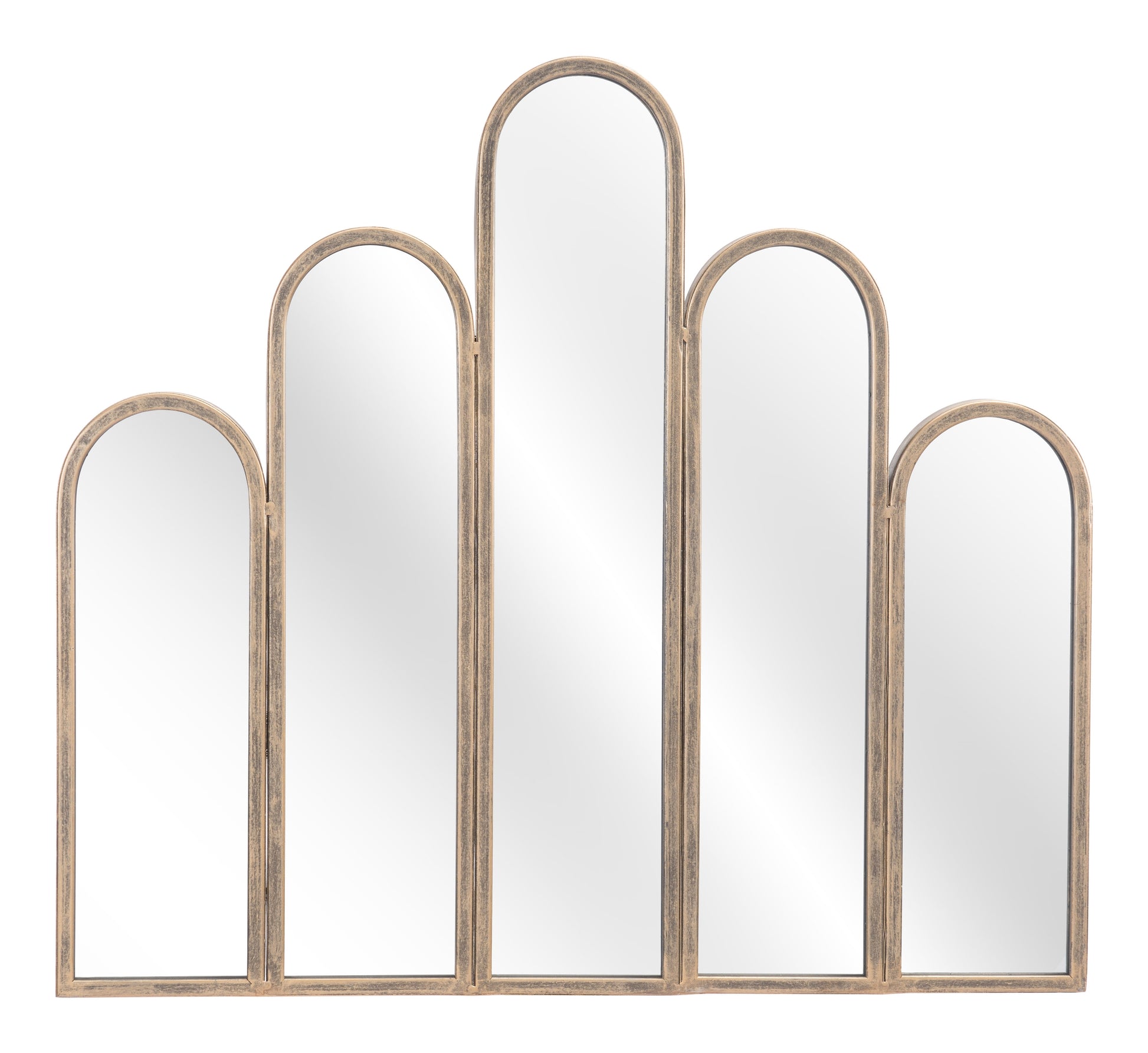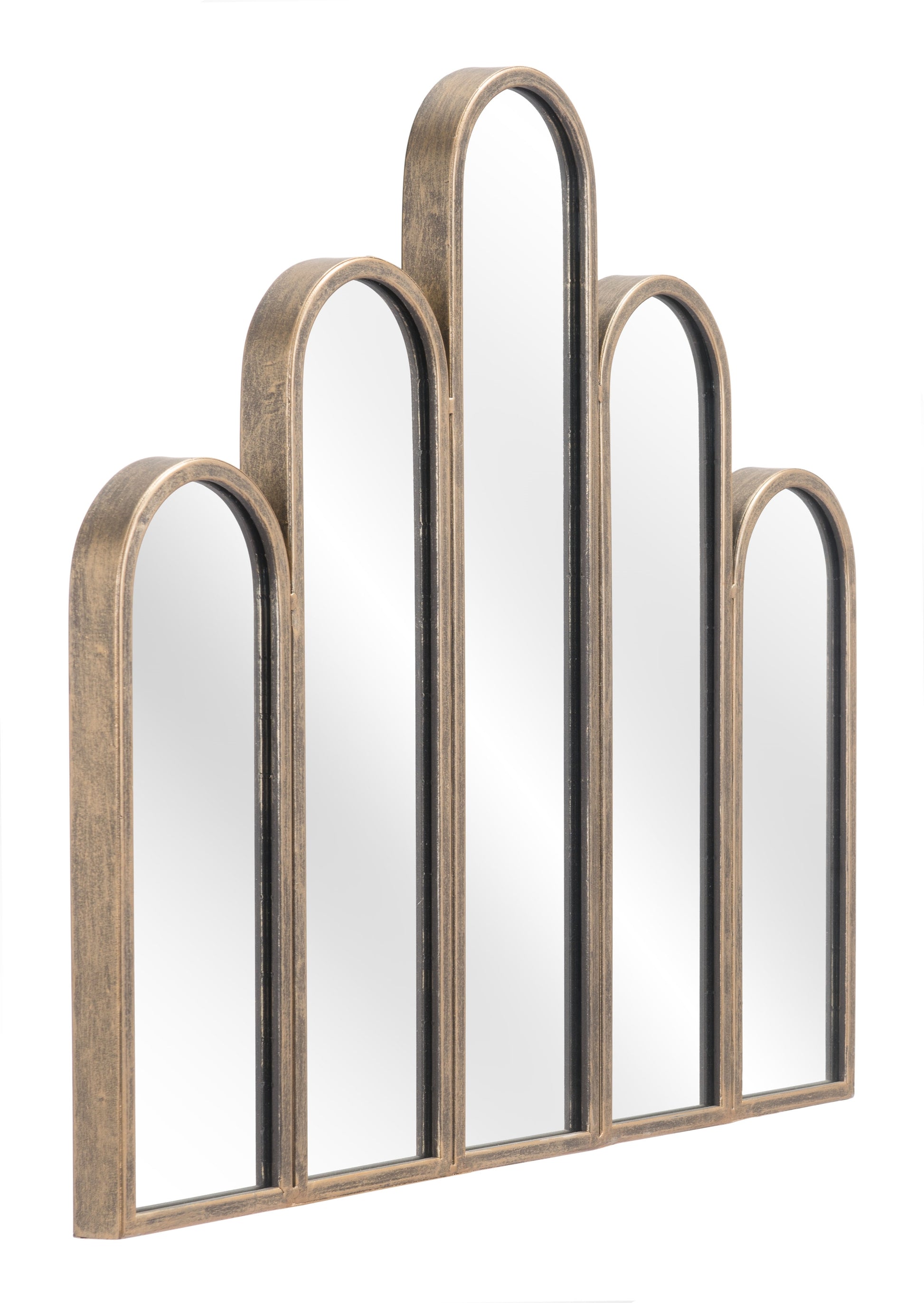 The Fountain Mirror from MODERNITURE. With a deco shape and design, the Fountain Mirror ha a powder coated steel frame. This decorative mirror looks good in any entry way, living area, or bathroom.