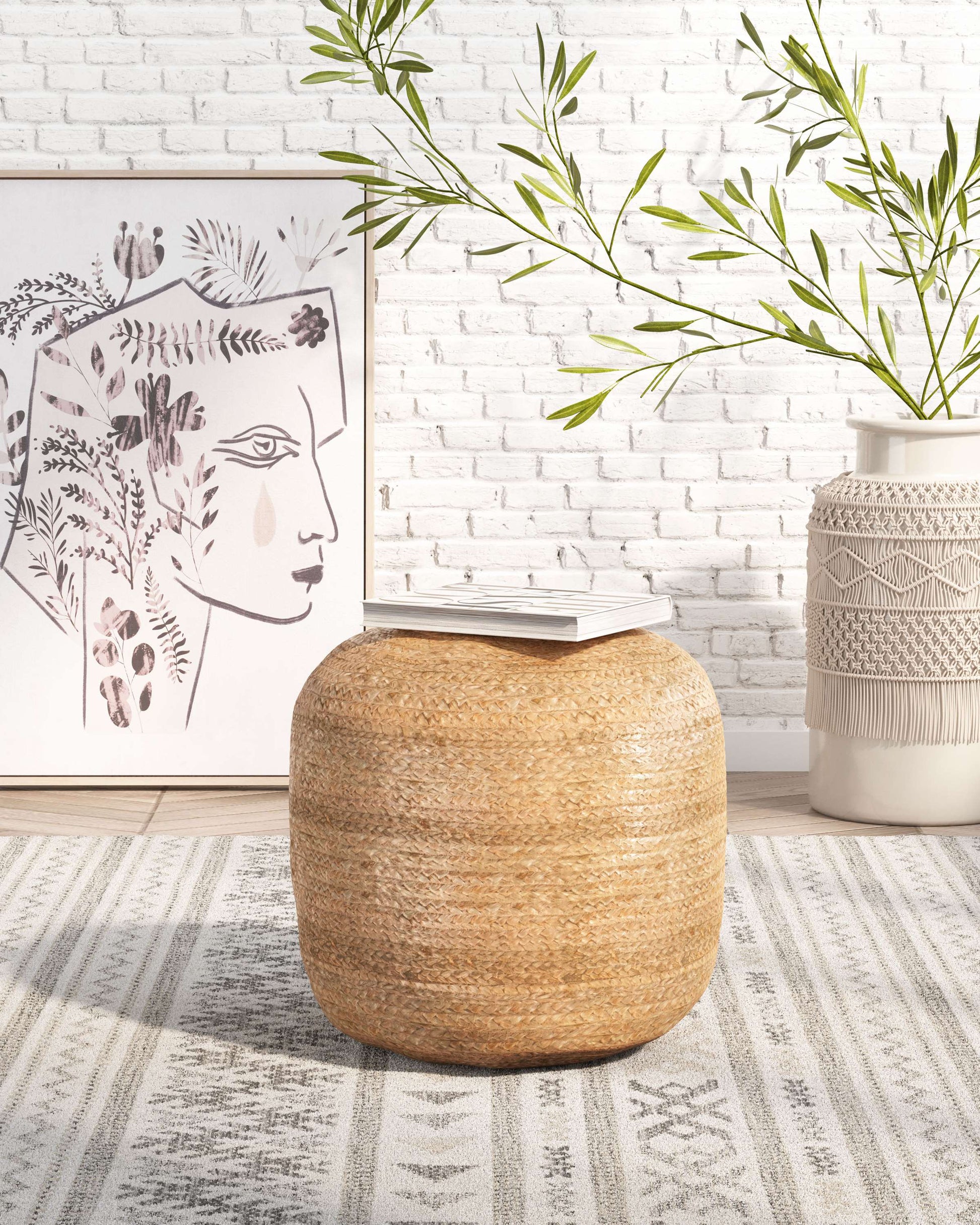 Call Now to Order M-F 9-5p PSTThe Lillian Ottoman from MODERNITURE. The Lillian Ottoman has a wonderful boho chic braid with a polyfill for comfortable seating