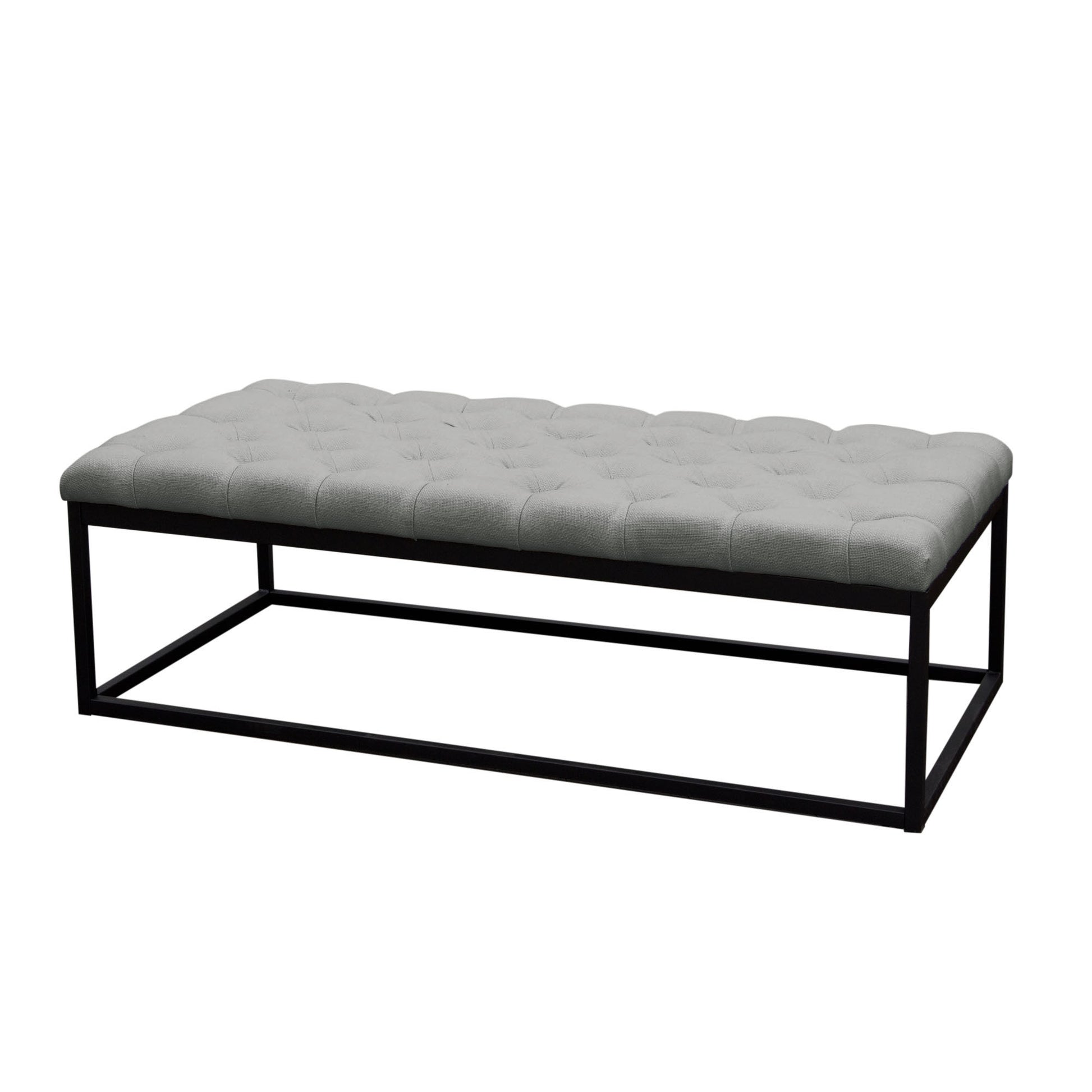 Mateo Black Powder Coat Metal Large Linen Tufted Bench