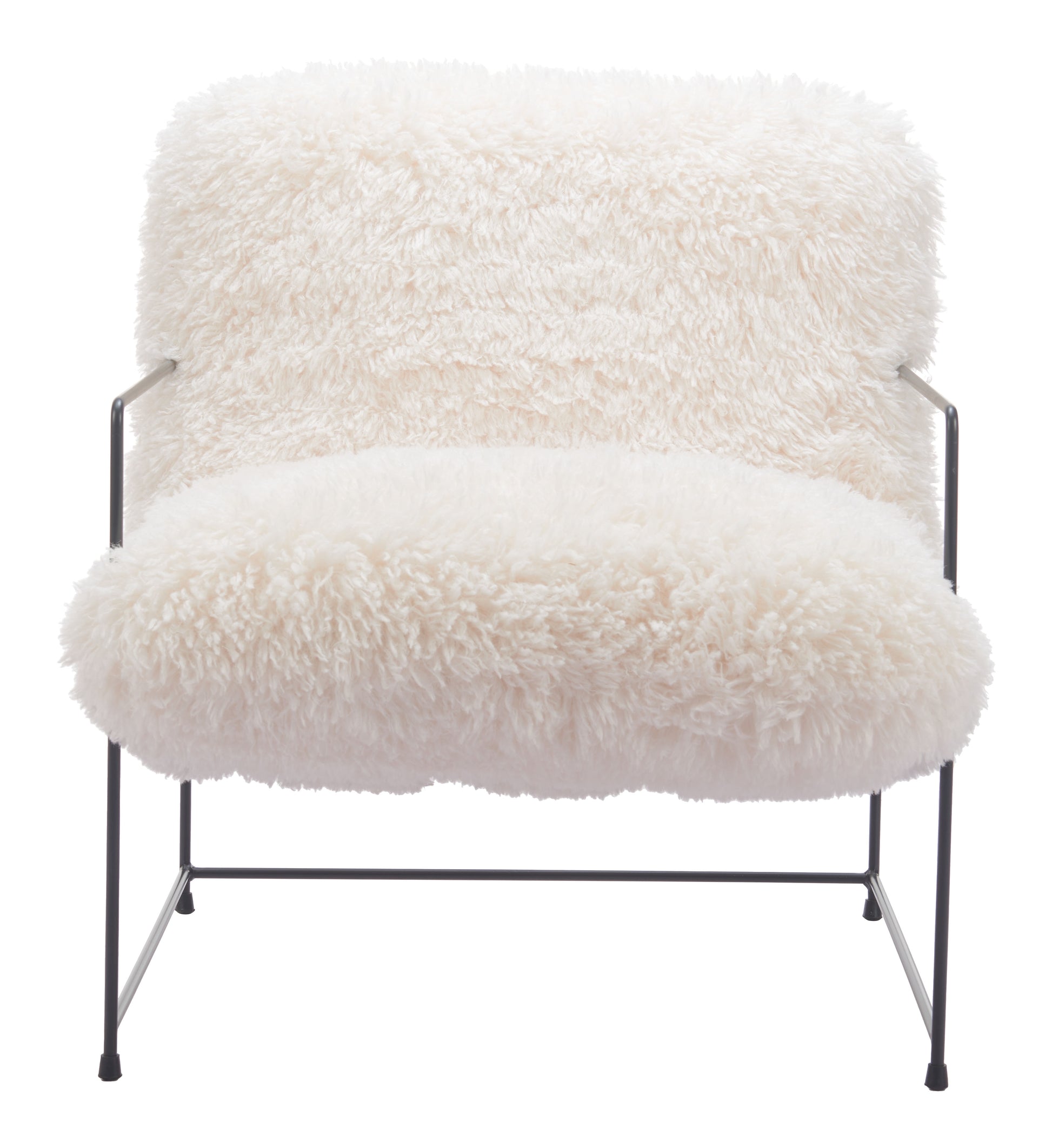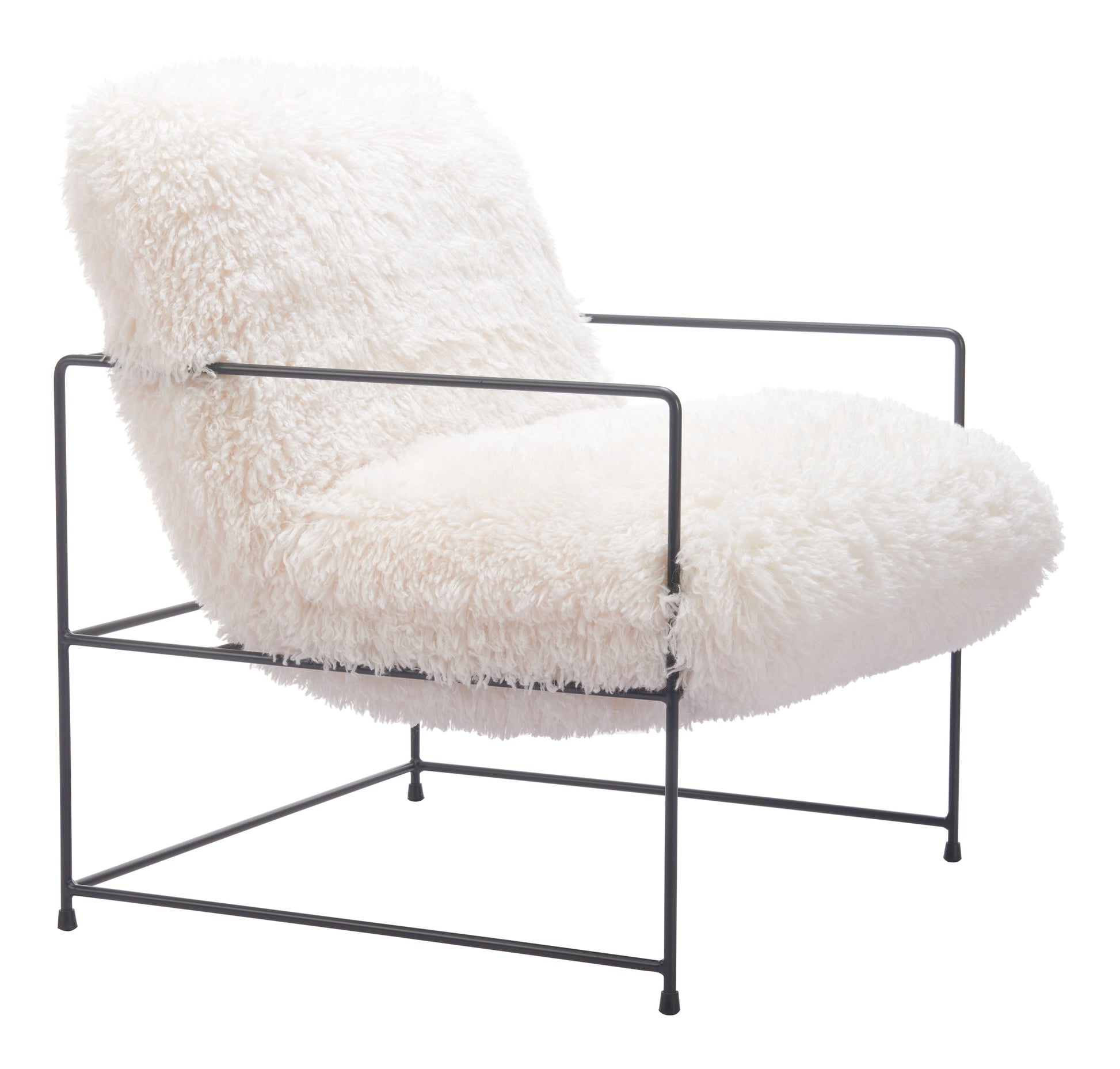 The Pelut Accent Chair from MODERNITURE. Introducing the Pelut Accent Chair, a masterpiece of contemporary design that effortlessly elevates any space, from upscale hotel lobbies to cozy living rooms. Wrapped in a luxurious shearling-like fabric, this chair invites you to experience a delightful texture that's as visually striking as it is comfortable to the touch. The Pelut Accent Chair's impeccable craftsmanship is evident in its robust steel frame, ensuring durability while complementing the fabric's plushness.